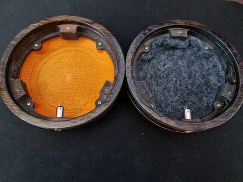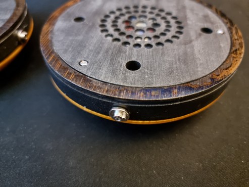 Pre-build shell have no any plastic parts- real wood and steel used here. As speakers I decided to use AKG 371 replacement speakers, but heavily modify them.